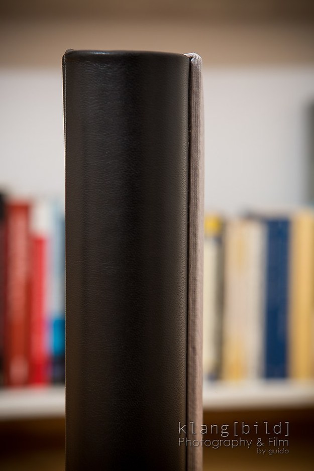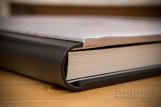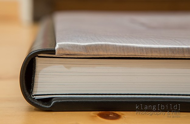 Ich habe mich bei meinem Musteralbum für eine Kombination aus Nappaleder und Seide entschieden. Als Papier für den Buchblock habe ich echtes Fotopapier in seidenmatt gewählt.
