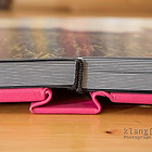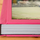 Hochzeitsalbum 2 besitzt einen Einband aus Rinderleder in der Farbe Pink mit einer eingelassenen Acrylglasplatte. Die Seiten bestehen aus echtem Seidenraster Fotopapier, kaschiert auf 300 gr. starkem Karton. Dickerer 700 gr. Karton ist möglich bei geringerer Seitenanzahl.